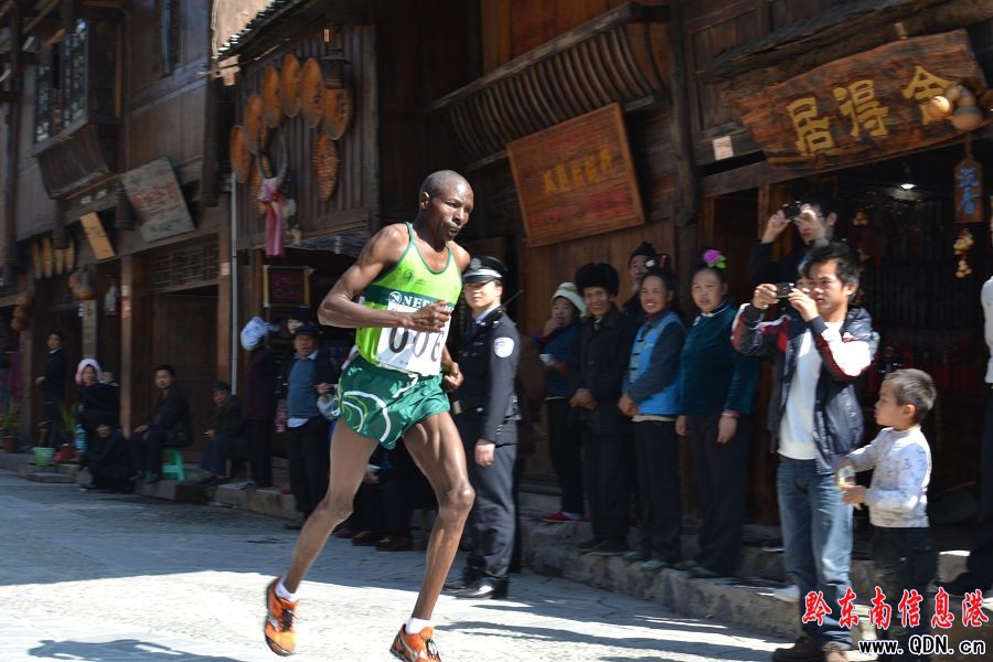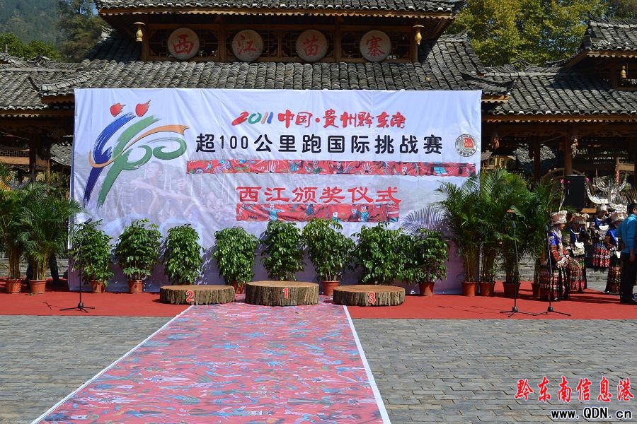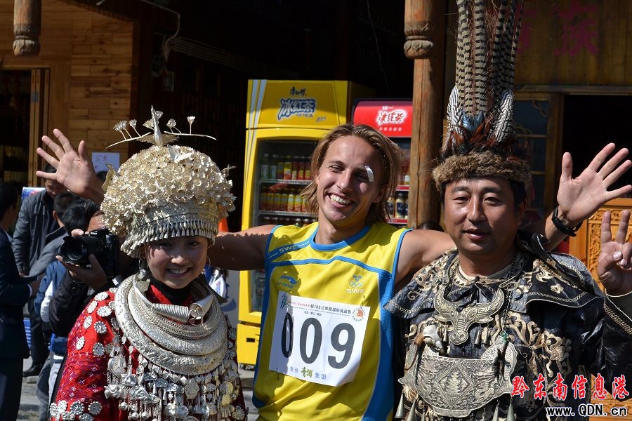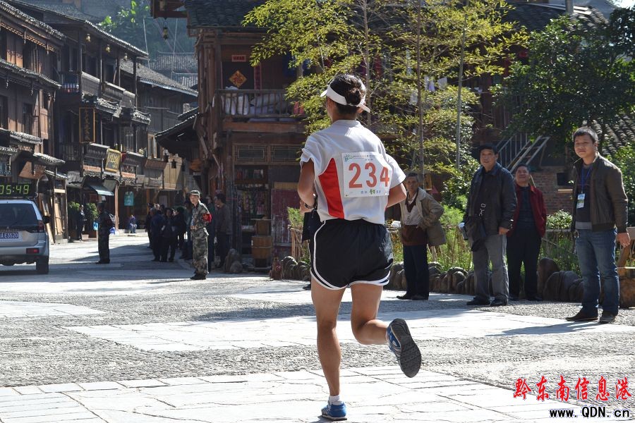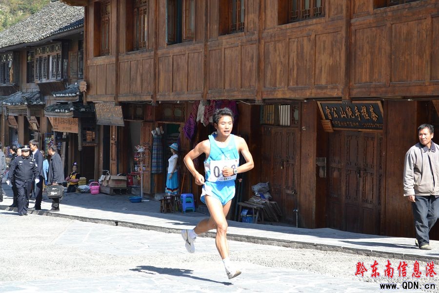 超100公里跑凱里至西江賽段(西江),路途中的運動員們和臨街的美景盡收眼低。