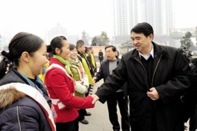 州委書記廖少華一行先后前往州委機要局、凱運司客車站、凱里火車站、州工行、金泉湖水廠、民族體育場、消防支隊一中隊,親切慰問節日堅守崗位的干部職工、環衛工人和消防官兵,對他們舍小家為大家、堅守崗位的精神表示敬佩和感謝。在民族體育場,廖少華、羅亮權一一與環衛工人親切握手,對他們辛勤勞動表示感謝。廖少華說,在春節這個中國傳統的節日里,你們放棄休息,堅守崗位,做好春節期間各項市容保障工作,讓老百姓過上一個舒舒服服、快快樂樂的年,我代表州委、州政府向你們送上最誠摯的新春祝福。在消防支隊一中隊,廖少華代表州四大班子對消防支隊全體官兵以及家屬致以節日的問候和祝福。他說,過去一年,全州廣大消防官兵日夜堅守崗位、認真履行職責使命,圓滿完成了搶險救災、滅火救援等各個消防安全保衛任務,為黔東南經濟發展做出了突出的貢獻。希望在新的一年里,繼續認真履行職責,發揚部隊優良傳統,努力提高農村消防等級,為促進地方科學發展與和諧建設做出新貢獻。