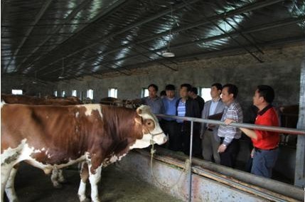 在肉牛標準示范場,他向俊建公司負責(zé)人詳細詢問目前該場的發(fā)展?fàn)顩r及經(jīng)營模式,與農(nóng)戶的聯(lián)結(jié)形式,帶動了多少農(nóng)戶……