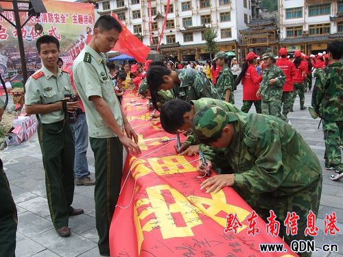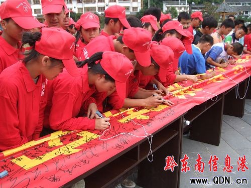 為了加強消防安全,預防火災和減少火災危害,增強應急救援工作,保護人身、財產安全,維護公共安全和社會穩定。8月12日上午,由共青團貴州省委、貴州省公安消防總隊主辦,共青團黔東南州委、黔東南州教育局、黔東南教育局、黔東南州公安消防支隊、雷山縣人民政府承辦的“貴州省‘關愛留守兒童,關注消防安全’主題活動”在雷山縣城啟動,來自雷山民中、雷山三中等學校的200多學生參加了啟動儀式,并簽名活動。圖為啟動現場和簽名的場面。 (張希才)