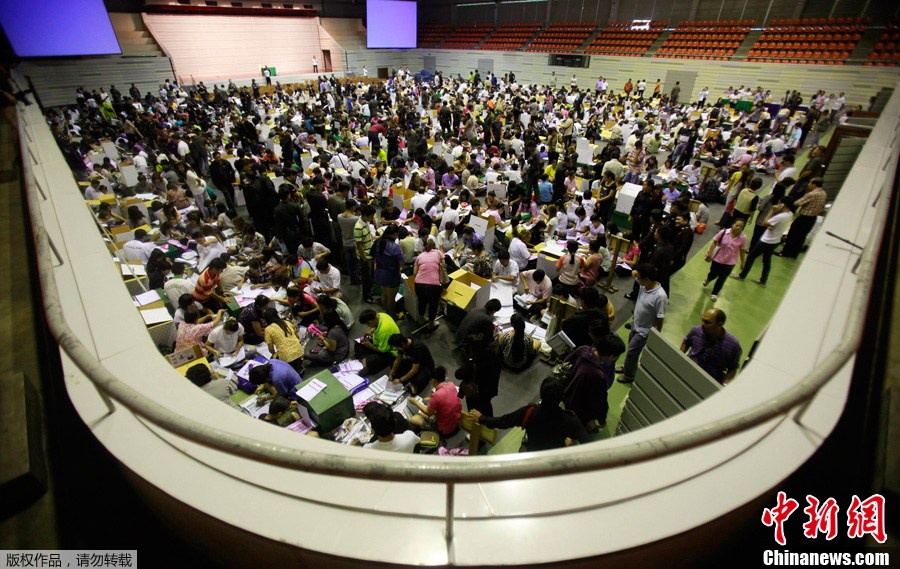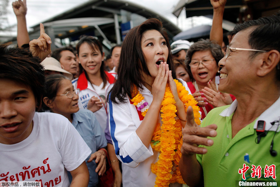 泰國7月3日迎來自1932年施行君主立憲制以來的第26次國會下議院選舉。這是2009年“紅衫軍”鬧事引發大規模流血事件后的首次政黨之爭。選舉主要在為泰黨和民主黨之間展開,外界普遍認為,新一任總理將在為泰黨頭號議員候選人英祿和民主黨黨首阿披實之間產生,英祿是前總理他信的妹妹。圖為他信妹妹英祿抵達投票站進行投票。