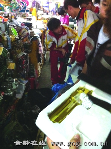 金黔在線訊 文具市場里不僅賣筆墨紙張,居然還隱藏著“軍火庫”,AK-47、M4A1、沙漠之鷹等仿照世界名槍的仿真槍居然當街販賣,而顧客大多是在校學生,商家還鼓吹說:“這槍絕對打得死鳥。”