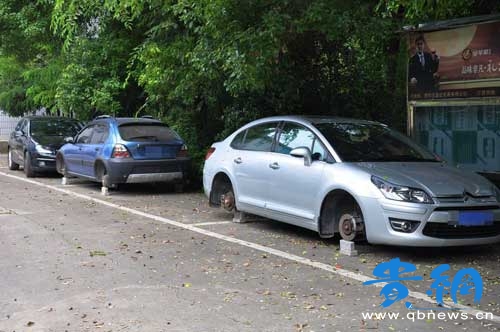 這年頭,車子停在路邊不安全,經常有小偷“光顧”,將車內值錢的東西洗劫一空,所以很多車主都不敢把貴重的東西放在車里。但昨天凌晨,可惡的小偷竟然連車輪胎都不放過,一口氣偷了貴大老師五輛車的20個車輪。而記者調查了解到,這樣一個車輪轉手賣掉隨便就能賺兩三百元,而且回收場所眾多且銷贓容易。
