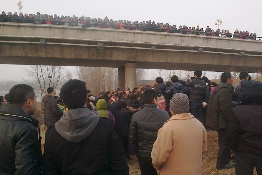 1月31日,有網友爆料,在江蘇響水縣裕廊大橋下有村民挖出多具孩童尸體。圖為挖掘尸體現場。據當地宣傳部工作人員介紹,1月29日上午,響水縣公安局刑警大隊接到孫榮榮(濱海縣人)報警稱,其女兒孫吉兒(4歲)在其生母吳維維(西安市人,暫住在響水縣響水鎮東園居委會)處無故死亡,死因可疑,要求公安機關立案查處。經調查,4歲女童疑為被其母同居男友打死。