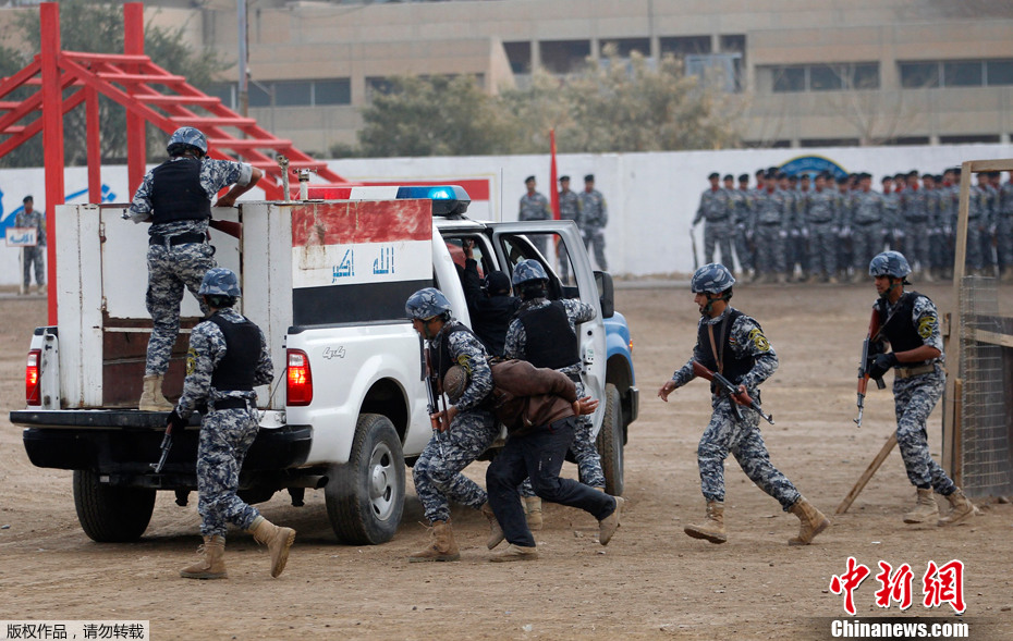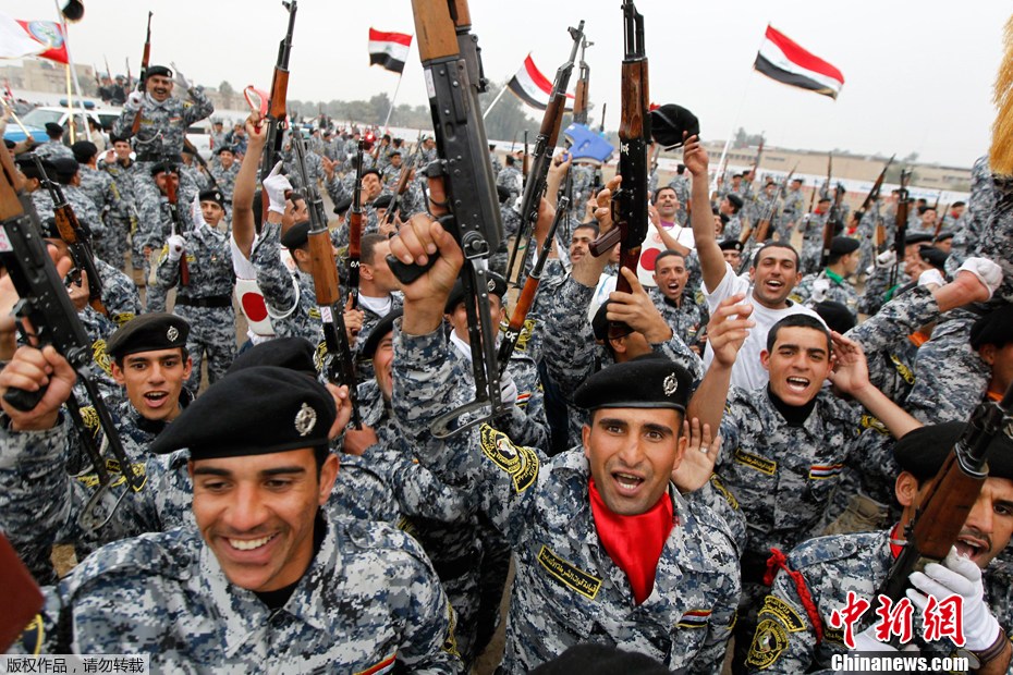 2012年2月1日,伊拉克巴格達,伊拉克聯邦警察學院舉行了畢業典禮,300多名警務人員經過60天的培訓課程順利畢業。在畢業典禮上還上演了精彩的警察技能展示。
