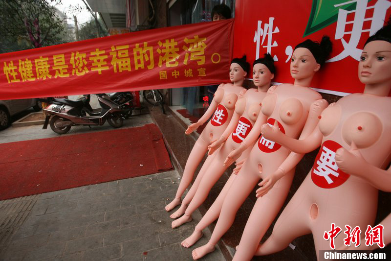 3月14日,長沙市雨花區(qū)阿彌嶺國中城,8位年輕人各舉著一具女性充氣娃娃,向市民宣傳在選擇性用品時學會辨別劣質(zhì)產(chǎn)品,不要因劣質(zhì)性用品影響性健康。8具充氣娃娃的胸前,還分別貼上“性、更、需、要、科、學、消、費”8個字。據(jù)悉,這一活動由倡導性健康志愿者發(fā)起舉辦,但有不少市民斥責這一活動“有傷風化”。賀文兵 攝 圖片來源:CFP視覺中國