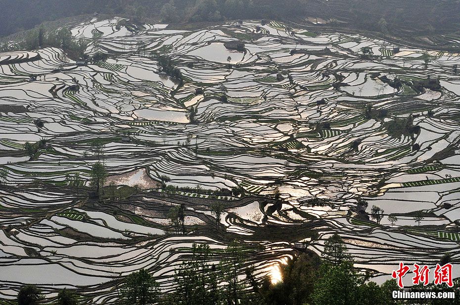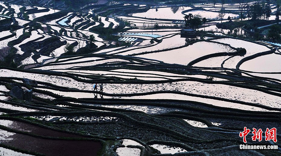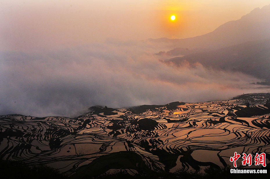 3月11日,云南紅河哈尼族彝族自治州元陽縣梯田在光線的映照下,線條勾勒出濃淡相宜的光影畫面,似氣韻生動的富有韻律美的國畫,似跳動的音符彈奏田野的自然之美,吸引了眾多游客和攝影愛好者前來拍攝和游玩。中新社發(fā) 董乃德 攝 圖片來源:CNSPHOTO