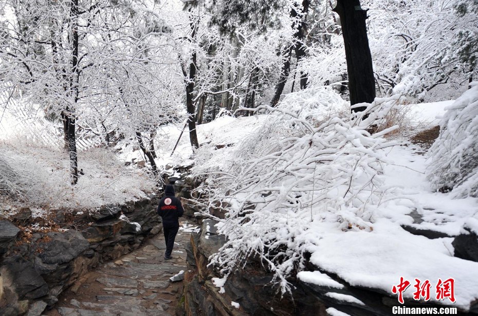 3月17日夜間至18日,北京部分地區(qū)突迎一場大雪。圖為香山腳下,銀裝素裹,分外美麗。中新網(wǎng)記者 金碩 攝