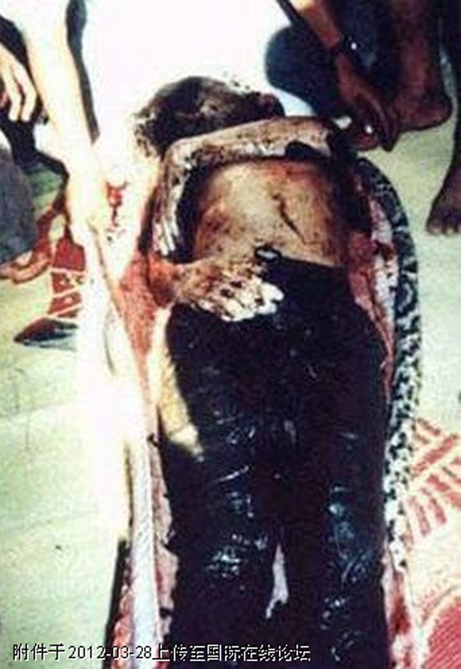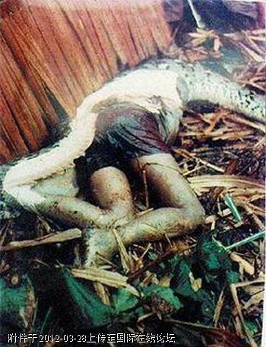 鳳凰網訊 一農婦到位于山腰的自家棉花地里干活去,中午吃飯時,其丈夫仍不見妻子回家,便來到棉花地里找,只見地里的棉花東倒西歪,同時地上還有一塊塊血跡,他立時預感不妙。當他找到距棉地10多米遠的一塊凹地時,被眼前的景象嚇呆了:一條約一丈長的大蛇匍匐在那里,一動不動,肚子脹得老粗,其丈夫轉身邊跑邊哭喊:“蛇吃人了!”手拿獵槍的一個村民朝大蛇頭部連開數槍,大蛇很快斃命。人們拿來刀子把蛇從腹部剖開,死者救出來了,但頭部已部分被蛇的胃液溶蝕,沒活下來,慘不忍睹的一場悲劇。