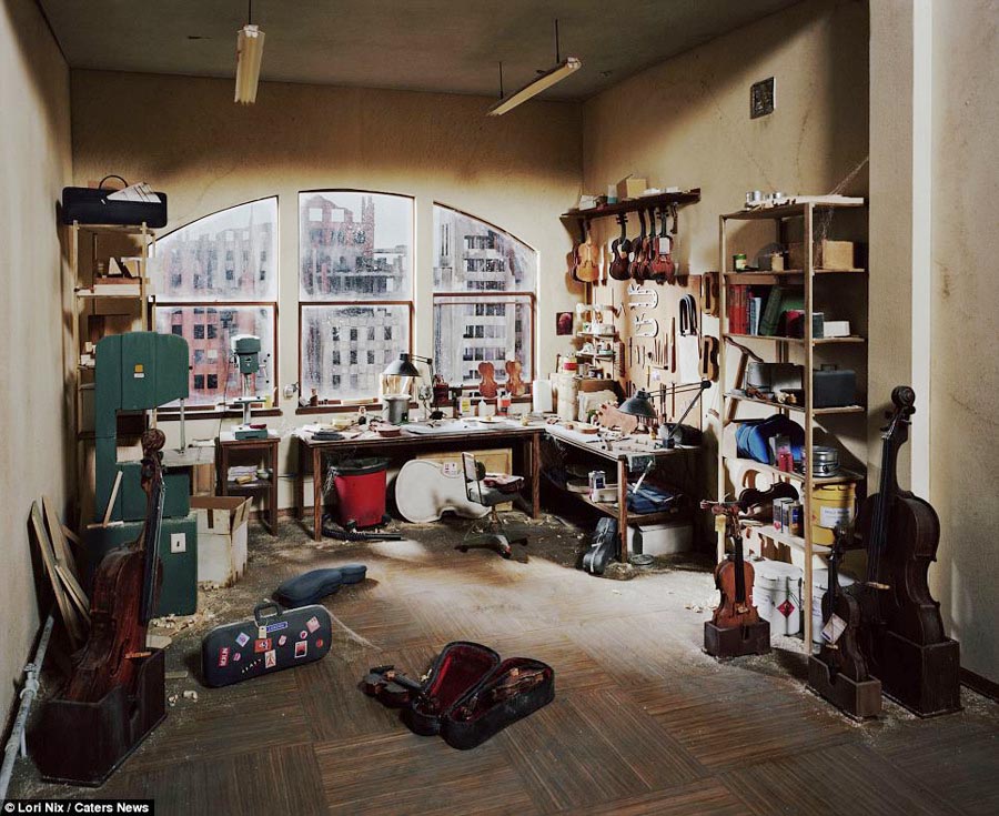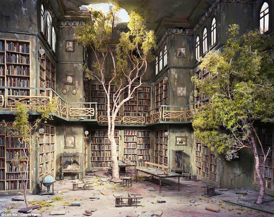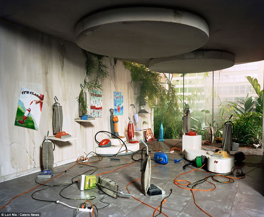 來自紐約布魯克林的藝術家洛瑞·尼克斯(Lori Nix )花費幾個星期的時間精心打造了這些令人難以置信的模型,向人們展示了日常生活的地方在遭遇世界末日后滿目瘡痍的景象。Lori為了制作這套作品,她自己的公寓已被破壞不少,公寓里每一個房間都能找到模型的殘骸和各種垃圾,電鋸工具散落在家里混亂不堪,儼然一幅“末日景象”。圖片來源:環球網