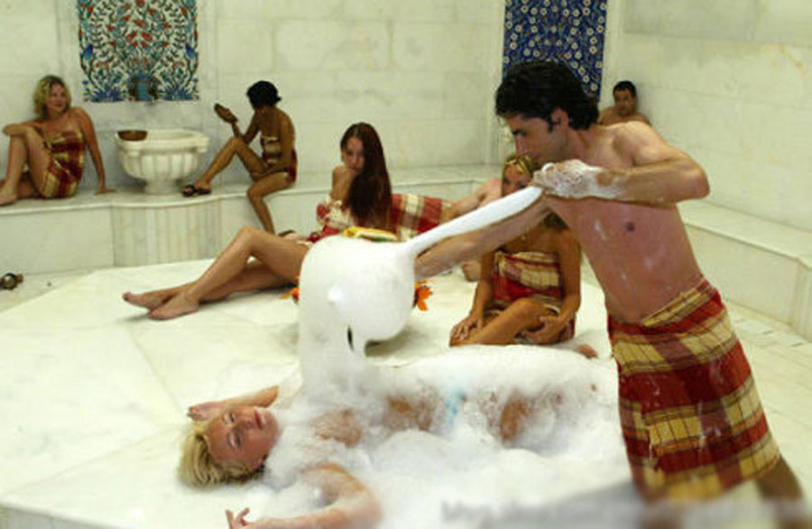 在澡堂子里決定婚姻大事,在咱中國人看來真是有點匪夷所思。可在土耳其,這種事情再正常不過了,歸根結底,還是與宗教信仰有關。 在這樣赤身裸體、坦誠相見的地兒,婆家人不僅可以仔細端詳未來兒媳婦兒的相貌和身材,還可以注意到其骨盆大小(據說女孩兒骨盆越大將來越能多子多福)、體味輕重等等,這種一箭好幾雕的事情,何樂而不為?
