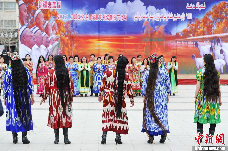 新疆麥蓋提縣舉行刀郎長辮子姑娘