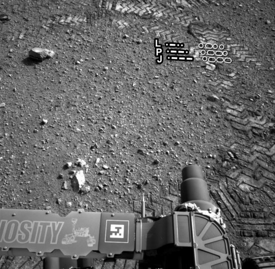 宇航局透露了為何在“好奇”號的車輪上加入莫爾斯碼。噴氣推進實驗室的“好奇”號試車負責人馬特-赫維利表示:“這些圖案會在地面上留下印記,用于計算‘好奇’號的行進距離。”這個工具被稱之為“視覺測程”,允許“好奇”號利用地面上的印記判斷自己的行進距離是否與預計的一樣或者車輪是否打滑。在坡度較陡的斜坡或者土壤松軟的地帶行進時,“好奇”號會經常停下來,通過地面上的印記了解自己的行進情況。