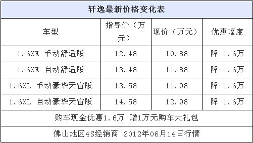 中新網訊 近日,汽車點評網編輯從東風日產佛山某經銷商處獲悉,即日起到該店購買日產軒逸可享綜合優惠2.6萬元,其中包含現金優惠1.6萬以及1萬元的購車豪華禮包,感興趣的朋友不妨致電或到店詳詢。
