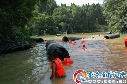 武警官兵冒險鋪設泄洪管 翁錫山攝