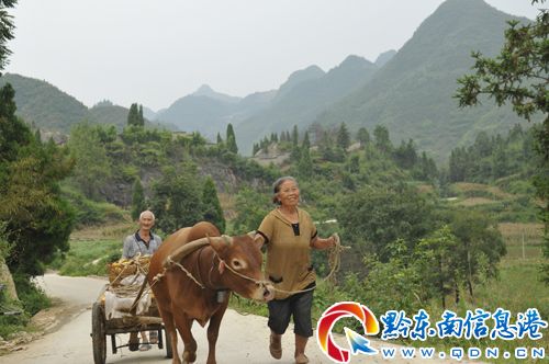 近日,岑鞏縣糧食增產工程玉米測產順利通過黔東南州專家組的驗收,最終加權平均理論產量為648.9公斤/畝,比原計劃指標(600公斤/畝)超8.15%。該縣通過創新11項農業技術使近9萬畝糧食實現增產。圖為水尾鎮白水村流洞組村民黃仕軍老人與妻子用牛車來回搬運玉米的情景。(楊元彬)