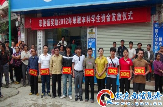 8月23日,從江縣宰便鎮舉行2012年錄取在學生獎學金發放儀式,共發放獎學金16000元,9名大學生受獎。