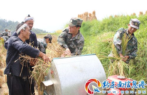 針對當前農村青壯年外出較多、大多數家庭嚴重缺乏勞動力的實際,從江縣人武部積極發揮民兵突擊隊、主力軍的優勢,利用晴好天氣,組織民兵秋收服務隊深入田間地頭,幫助軍烈屬和缺乏勞動力的苗侗群眾搶抓晴好天氣搶收稻谷,得到廣大苗侗人民的高度贊揚。