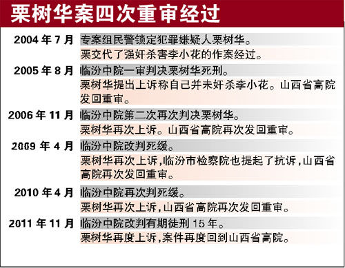 警方連夜對(duì)栗樹(shù)華進(jìn)行了突擊審訊,栗樹(shù)華最終交代了整個(gè)犯罪過(guò)程。通過(guò)審訊,栗樹(shù)華陸續(xù)交代了自己在過(guò)去半年間陸續(xù)強(qiáng)奸了6名女子的犯罪事實(shí)。但由于其中幾起受害人沒(méi)有報(bào)案,警方最終認(rèn)定其中4起為栗所為。原來(lái),早從2003年12月起,這個(gè)色魔便將魔掌伸向了周邊單獨(dú)出行的女子,并涉嫌強(qiáng)奸殺害了李小花。