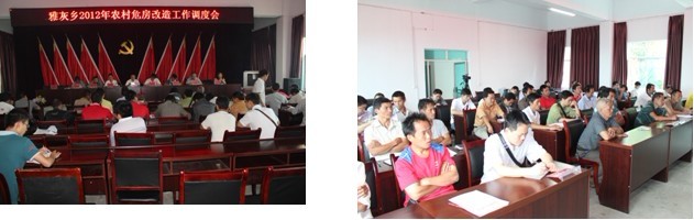 會上,副鄉長金顯福組織學習了《雅灰鄉2012年農村危房改造工作領導小組的通知》和《雅灰鄉2012年農村危房改造工作實施方案》。鄉長羅運波和鄉黨委書記雷德軍在會上針對危房改造工作要求全體與會人員,要高度重視,牢記趙克志省長到雅灰調研里的指示精神,把農村危房改造當作民生工作的頭等大事來抓,切實增強責任意識和服務意識。廣泛宣傳,認真組織,及時上報。各相關部門,要認真做好審批,結合全鄉實際作好規劃,精心組織 實施,將危房改造工作打造成民心工程。把好事做實,把實事做好,高標準、高質量確保全面完成全年農村危房改造工作任務,真正讓國家惠民政策造福一方百姓。