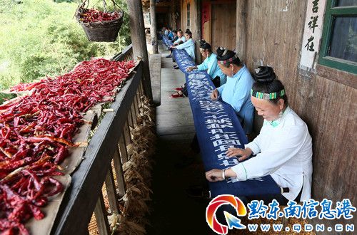 據了解,丹寨縣排調鎮遠景村全村有232戶人家,有近300人從事蠟染制作。是一個傳統的苗族蠟染村寨,也是貴州省為數不多的國家級非物質文化遺產——苗族蠟染傳承地之一,近十年來,村內的水、電、路及廣播電視等各項基礎設施都已得到了很大的改善,村民的生活條件得到了進一步的提高。全村人均收入從十年前的六百多元增加到了目前的三千九百多元。(黃曉海 楊昌盛 石開恒)