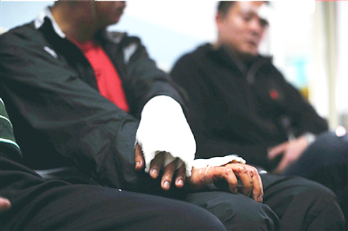 被打職工在醫(yī)院接受治療。本報(bào)記者王苡萱攝