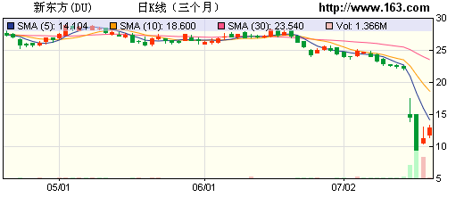 此前,新東方先后因?yàn)閂IE結(jié)構(gòu)調(diào)整遭調(diào)查和被渾水質(zhì)疑連續(xù)兩個交易日大跌35%;其股價從7月16日收盤的22.26美元跌至周三收盤的9.5美元,累計跌幅超57%。