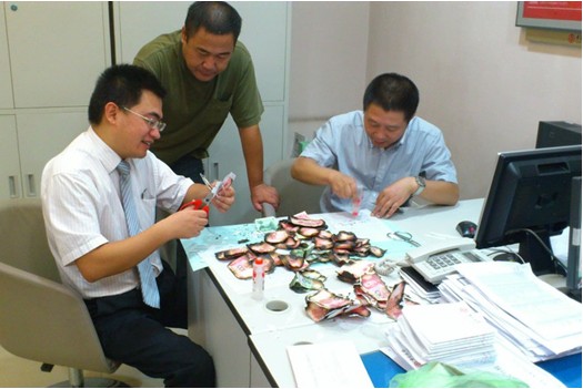 當天上午9時許,王某滿頭大汗手捧一個大紙箱急匆匆跨進了中國銀行六合支行營業大廳,向營業部副主任柯偉訴說了事情經過:“求求你們了,看能不能幫我兌換一些沒燒盡的紙幣,這可是我打工的血汗錢啊!”不到5分鐘,該支行副行長袁松、綜管部主任陳俊、營業部客戶經理史維忠聞訊趕到值班室。在查看了被燒毀的紙幣后,他們發現里面仍有少許還沒有燒盡的紙幣,依據銀行有關規定仍可以兌換現金。該行立即從各科室抽調5名快手來到接待室,動手將燒毀的紙幣一張張挑撿,按殘幣大小、面值、號碼分門別類。記者現場看到,這三萬元現金中有一百張面值50元,其余全是百元大鈔,隨即,5名工作人員進行了分工,撿、分、拼、貼、統計一條龍作業,不顧午休一直加班到下午1點,才將一紙箱被燒毀的紙幣分類挑撿出來。經清點,被燒毀的殘幣中,有7張沒有燒損的百元大鈔,可全額兌換;47張燒掉二分之一的百元大鈔,可兌換一半,計2350元;8張燒掉二分之一的50元大鈔,可兌換一半,計200元。經清點,當場將可以兌換的62張燒損紙幣收回,并將兌換的3250元現金交到王某手上。其余16張拼貼的殘缺人民幣屬于不能兌換的,給王某帶回去“留個教訓”。