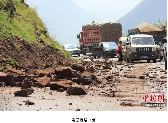 9月7日23時,中新網記者驅車飛馳至云南彝良縣地震災區。在距震中洛澤河鎮4、5公里處受阻。記者沿途看到,災區道路受損嚴重,沿途山體不時有落石發生。越距震中,情況越是嚴重。前方消息稱,山體坍塌造成前往震中道路阻斷,工程人員正在緊急搶修中。目前,救援人員只能徒步進入。