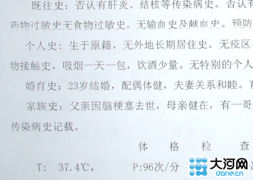 家屬認為這份病歷疑點重重,如患者的父親至今仍健在,醫院卻在“家族史”中,注明其“因腦梗塞去世”;手術的記錄時間和主刀醫生的名字也都寫錯。