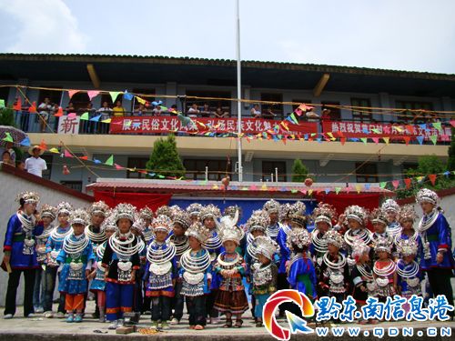 黃門(mén)九年制民族學(xué)校是錦屏九寨侗歌鄉(xiāng)鎮(zhèn)的一所中小學(xué)為一體的學(xué)校,近年來(lái),為繼承和發(fā)揚(yáng)純樸的北侗“歌簦”民族文化遺產(chǎn),開(kāi)拓鄉(xiāng)土味濃郁的民族文化旅游業(yè),學(xué)校結(jié)合鄉(xiāng)、校、村情把侗歌“歌簦”文化遺產(chǎn)引進(jìn)中小學(xué)課堂,利用鄉(xiāng)土教材課本和課外活動(dòng)時(shí)間進(jìn)行授課、通過(guò)課間休息充分利用廣播播放侗歌、編寫(xiě)侗語(yǔ)校歌讓學(xué)生傳承學(xué)唱、培養(yǎng)侗族民歌新人、重大民族節(jié)日開(kāi)展侗歌擂臺(tái)賽。把山歌的各種唱法借助節(jié)日這一活動(dòng)載體表現(xiàn)得淋漓盡致,激發(fā)廣大學(xué)生人人學(xué)侗歌、人人愛(ài)侗歌、人人會(huì)侗歌的良好氛圍,達(dá)到傳承民族歌簦文化的真正目的。圖為北侗黃門(mén)民族學(xué)校和黃門(mén)村日前在聯(lián)合舉辦侗歌擂臺(tái)賽。(石福濤 攝)