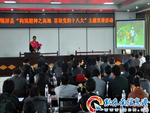 11月1日上午,為期一周的錦屏縣“構(gòu)筑精神高地、喜迎十八大”主題宣講活動在錦屏經(jīng)濟開發(fā)區(qū)拉開帷幕。