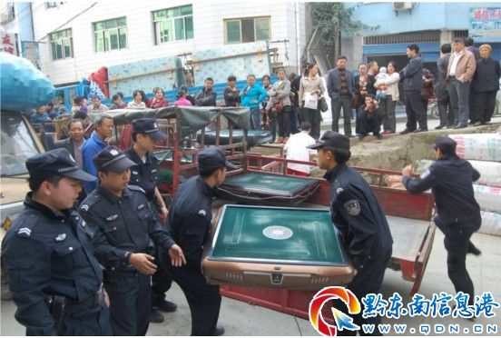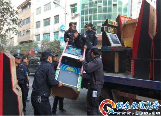 11月2日下午,錦屏縣公安局在錦屏城區搗毀賭博窩點11家,收繳用于賭博的麻將機30臺, 查扣電子游戲機53臺。