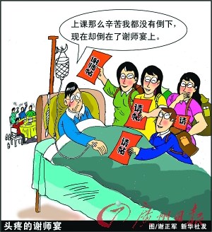 深圳羅湖水庫(kù)小學(xué)有家長(zhǎng)近日向本報(bào)反映稱,小孩今年7月小學(xué)畢業(yè),令他不滿的是,學(xué)校聯(lián)合部分家長(zhǎng)發(fā)起要搞“謝師宴”,每人要交400元,送禮物給老師。