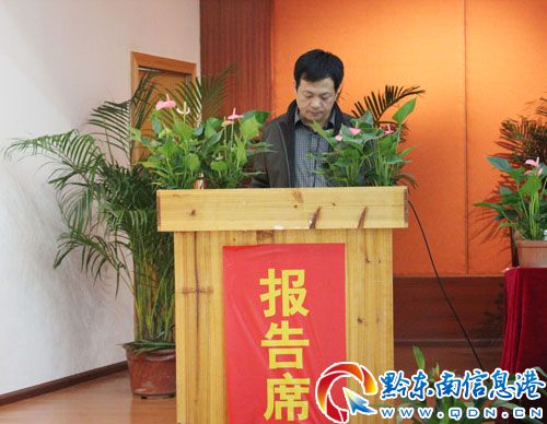 圖為會長隆曉明作雷山縣個體私營經濟協會第一屆理事會工作報告