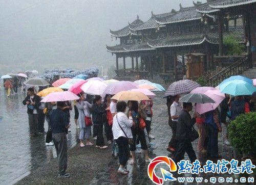 2012年6月22日端午小長假第一天,筆者看到,雖然是陰雨天氣,但前往雷山縣“天下西江”苗寨的游客絡繹不絕,游客近萬人次,有的打著雨傘,有的身著雨衣,他們興致勃勃進入景區。為了讓游客高興而來,滿意而歸,雷山縣公安局黨委組織公安民警、縣交警大隊與西江派出所、西江景區管理局協管員一道,全力以赴做好端午小長假接待工作,堅守工作崗位,維護社會秩序,保障道路交通安全暢通。