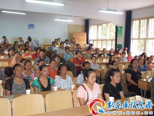 為進一步強化對食堂從業人員的培訓和管理,確保全縣中小學食堂在秋季開學初正常開餐和學生飲食安全,使新招聘的191名食堂從業人員能盡快熟悉操作流程,扎實推進學生營養改善計劃工程的實施,近日,雷山縣召開了第一期食堂從業人員培訓會。培訓會在丹江二小階梯教室召開,有來自全縣中小學新招聘的食堂從業人員共90余人參加。縣教育局紀檢組長潘承光主持會議。