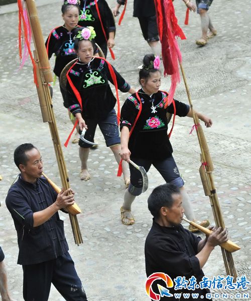 高排蘆笙,是貴州省雷山縣方祥地區苗族的蘆笙,高達五六米,七支以上為一組,聲音宏亮,所以叫高排蘆笙。是全縣11項國家非物質文化遺產之一,其歷史悠久,經常代表雷山參加省內外各類大型文化演出活動。為了保護和傳承這一民族傳統文化遺產,在全國政協常委、原省政協副主席吳嘉甫的牽線搭橋下,得到省政協、省文化廳、省文物局、省供銷社等大力支持下,共資助該鄉20萬元舉行這屆活動。經過激烈的比賽,方祥鄉水電村獲得第一名,捧走獎金3000元。(陳沛亮)