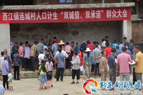在雷山縣連城村,由計生干部組織村民學習,耐心詳解政策。通過政策的引導,發放宣傳資料等方式,讓群眾加深對計劃生育工作的了解,紛紛表示要從講誠信,重承諾出發,全面支持人口和計劃生育誠信工程的啟動。會后,村民還主動與鎮政府簽訂了《誠信計生雙向承諾書》。