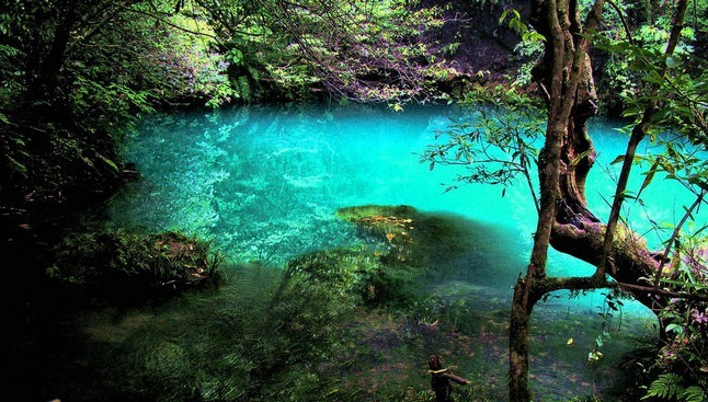 許多名人雅士曾到此游覽逗留,行走在龍?zhí)梁由嫌危奖平埑兀衩馗芯驮綇?qiáng),這里隨時(shí)隨地都是靜悄 俏的,靜得讓人想屏住呼吸,唯恐驚走靈氣。來(lái)到龍?zhí)梁颖M頭,橫河趟水而過(guò),登上對(duì)岸的竹林,穿行30多米,眼前豁然一片藍(lán)光,只見(jiàn)一汪池水,面積約150平方米,一個(gè)籃球場(chǎng)大小,水平如鏡,呈寶藍(lán)色,深不可測(cè)。池邊有高不見(jiàn)頂、刀劈斧削的懸崖三面環(huán)繞,懸崖上長(zhǎng)滿高大喬木,遮天蔽日,這就是令人向往的龍池。龍池的深度,至今尚未作過(guò)科學(xué)的測(cè)量,仍然是“謎”。藍(lán)藍(lán)的龍池水,一流入龍?zhí)梁哟玻妥兂闪藵嵃椎?ldquo;玉液”,據(jù)說(shuō)即使春夏之季,連日暴雨,甚至于山洪暴發(fā),龍?zhí)梁铀构嗳臊埑?龍池的水平面高于龍?zhí)梁雍哟?,龍池的水依然是藍(lán)色。