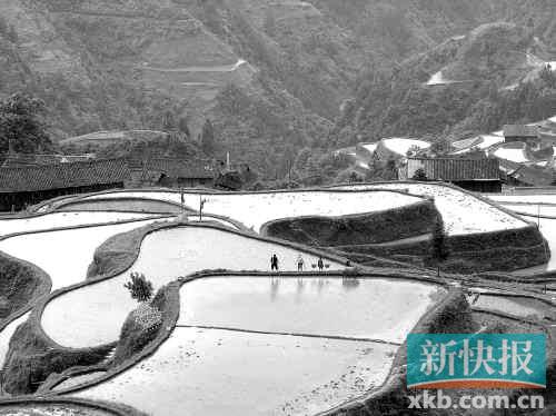 吊腳樓只能滿足遠觀拍照的需要,只有赤足走在梯田的田基上,才會接觸那些位處高山、但并不荒蕪的土地?吹矫绨迕裾诓逖,不妨借幾株秧苗插在水中,心中自然會涌起秋天再來的念頭。