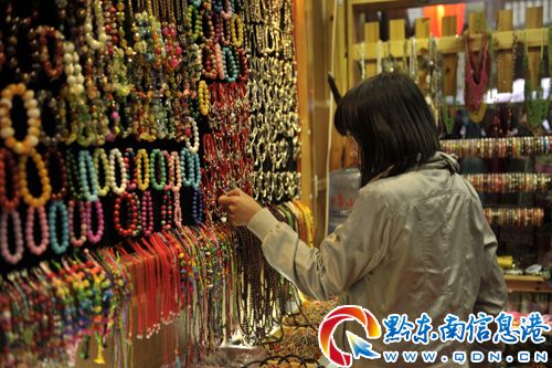 一名游客在選購(gòu)紀(jì)念商品