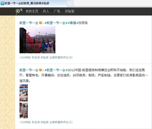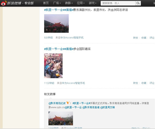 2012中國·凱里銀飾刺繡博覽會開展儀式于11月18日11時舉行,黔東南信息港的編輯記者們拿起手中的“裝備”,通過官方微博及時上傳開展儀式會場盛況,引來網友圍觀。