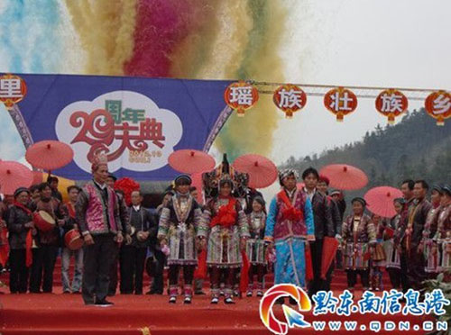 男大當婚,女大當嫁。11月29日,在從江縣翠里瑤族壯族鄉20周年慶典文藝演出中,由該鄉擺翁村上演的“瑤族婚俗展演”,引起眾多來賓熱議,人們稱頌不已。