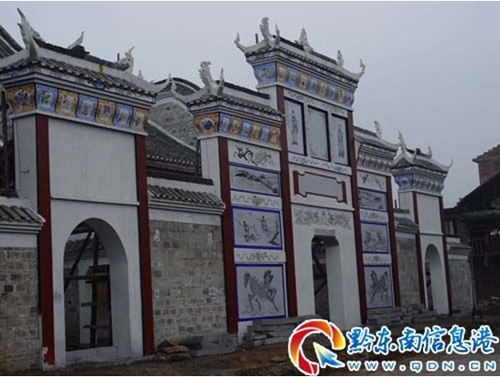 如今恢復重建的隆里古城千戶所衙門,嚴格按“修舊如就”的原則,取上百年老杉木、清水江上等青石、明清時期老青磚、老青瓦作原料修建。古建筑從選料、規格盡量與原物一致,各種不同雕制品專門請來高級藝人防制,使重新修建的千戶所衙門再現明清兩代的歷史風貌。圖為隆里古城“修舊如舊”恢復重建千戶所衙門正門。(石福濤 攝)