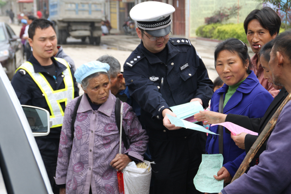 連日來(lái),貴州省麻江縣交警大隊(duì)組織宣傳民警深入公路沿線社區(qū)、企業(yè)、村寨、學(xué)校通過(guò)上交通安全課、擺放宣傳展板、發(fā)放宣傳資料等多形式開(kāi)展宣傳,同時(shí)到每個(gè)有車、有駕駛?cè)说霓r(nóng)戶,講解駕駛摩托車、低速載貨汽車、三輪汽車安全常識(shí)和典型事故案例等內(nèi)容,以血的教訓(xùn)廣泛宣傳乘坐貨運(yùn)車輛的危害性,不斷增強(qiáng)農(nóng)村群眾的安全出行意識(shí)。(唐光新 王 煒)