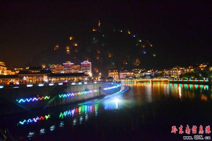 雷山縣城滿掛霓虹燈迎新春