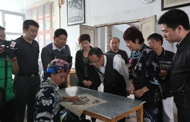 據(jù)黔東南州人民政府網(wǎng)消息 4月20日,國(guó)家文化部非物質(zhì)文化遺產(chǎn)司司長(zhǎng)馬文輝一行在省文化廳副廳長(zhǎng)黎盛祥、非遺處處長(zhǎng)張?jiān)娚彙⒅菸幕w育局局長(zhǎng)霍盛紅等人的陪同下,參觀和考察了我州的非物質(zhì)文化遺產(chǎn)項(xiàng)目。
