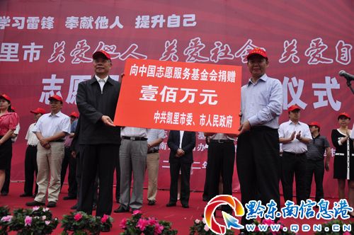 州委常委、凱里市委書記黃遠良代表凱里市委、市政府向中國志愿服務基金會捐款100萬元