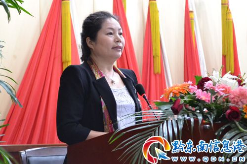 新當選的黔東南州婦聯第九屆執委會主席陳曉瓊致閉幕詞